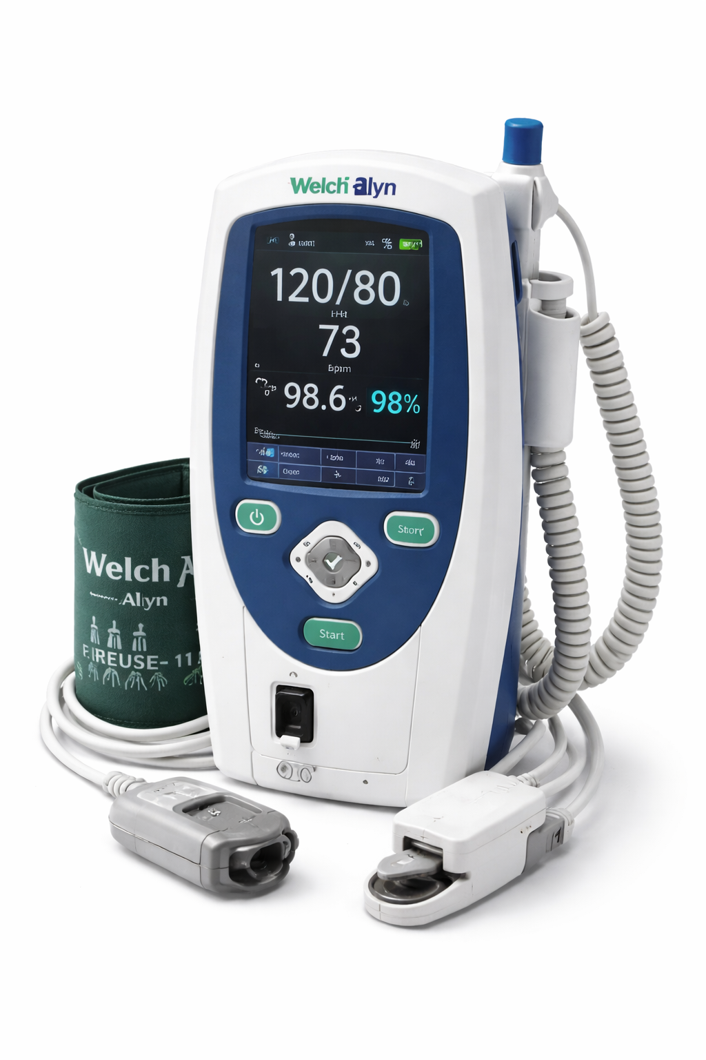 Portable spot-check device for quick measurement of key vitals during triage and routine visits.
